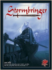 Tout comme l’œuvre de M. Moorcock est atypique à côté du Seigneur des Anneaux de JRR Tolkien, Stormbringer est un OVNI dans le paysage des jeux de rôle Medfan de l’époque. L’univers est sombre, désespéré, mais aussi plus épique.