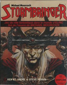 Le jeu de rôle, Stormbringer est écrit par Ken St. Andre, également créateur de Tunnels & Trolls et auteur de romans de SF. Il sera publié par Chaosium en anglais en 1981, puis en France en 1989 par Oriflam.