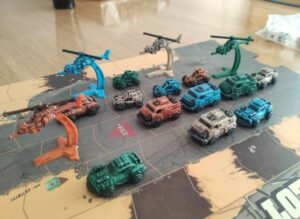 Sous une tente balayée par les vents, vous regardez vos 3 bolides : le buggy fatal, maniable, léger, difficile à shooter mais vulnérable comme un papillon dans un couloir de vent. La revancharde, un compromis roulant, ni flèche ni forteresse. L’Eliminatank, un panneau de tir en mouvement mais très résistant à l’impact.